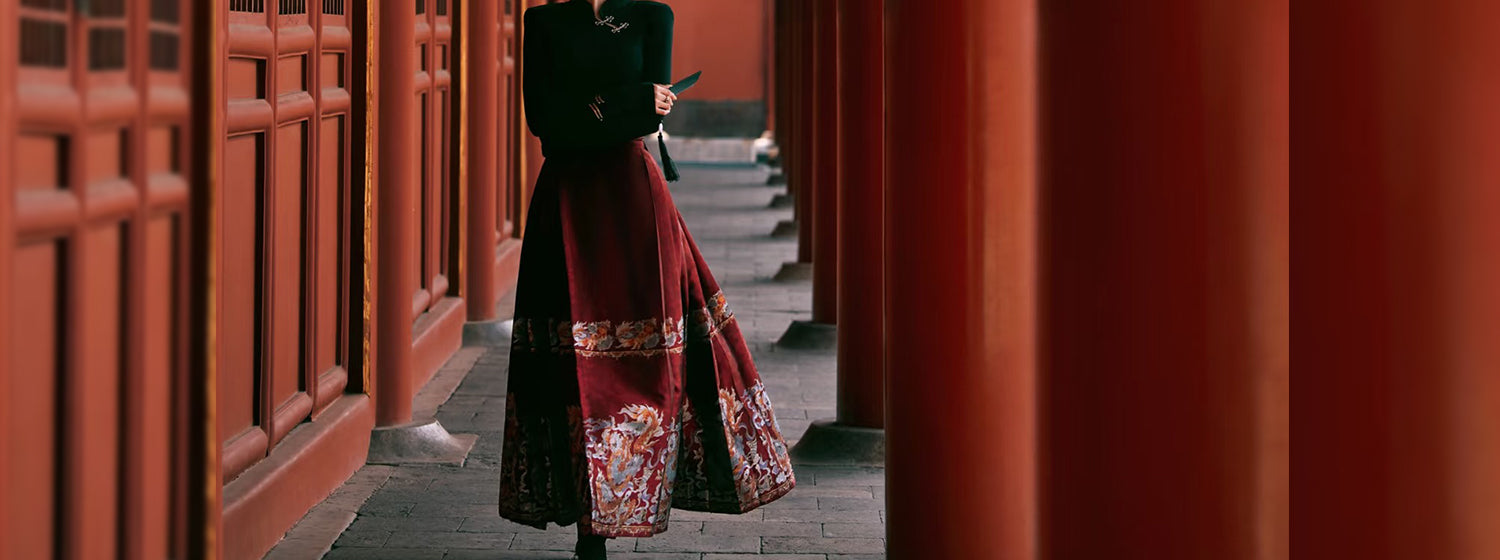 A type of lower garment originating from the Song Dynasty. It was invented to make walking and horseback riding more convenient.The hem of the skirt is usually embroidered or adorned with patterns such as clouds, flowers, or birds.