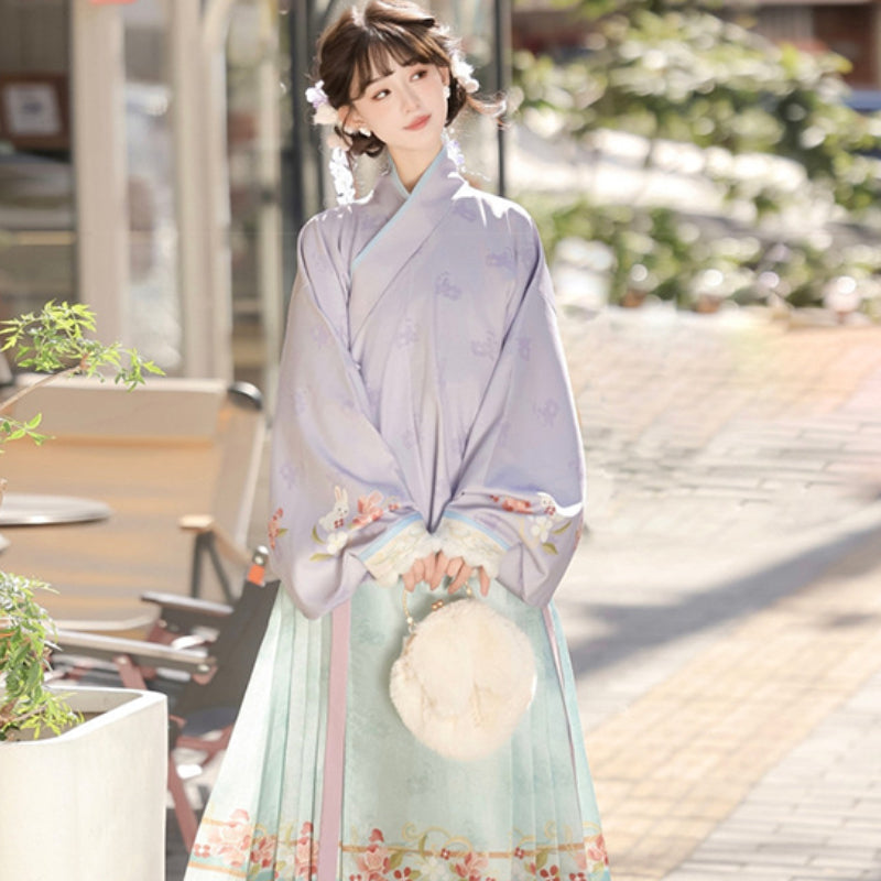 The Nuomitu 糯米兔 modern Hanfu blends playful charm with a warm winter styling approach, featuring a fluffy-trim vest paired with a traditional long skirt. Inspired by handmade embroidery aesthetics, the outfit presents delicate floral and seasonal motifs that capture a soft, storybook sensibility while staying true to historical design cues. The vest structure is upgraded for colder seasons, offering a comfortable insulated feel with adorable yet elegant detailing suitable for festivals, everyday outings, photography, and winter styling. Lightweight layering allows easy matching with blouses, sweaters, and seasonal accessories, making it a versatile wardrobe addition.