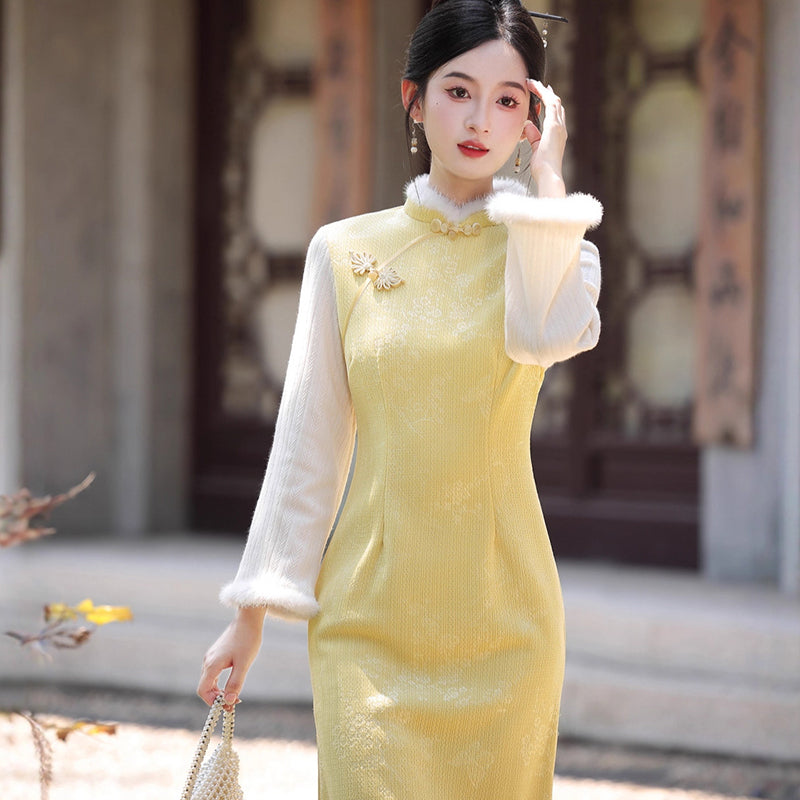 Women's Qipao Dongyun 冬韵 Asian Thicken Dress Chinese Modern Hanfu Clothing Velvet Cheongsam Winter