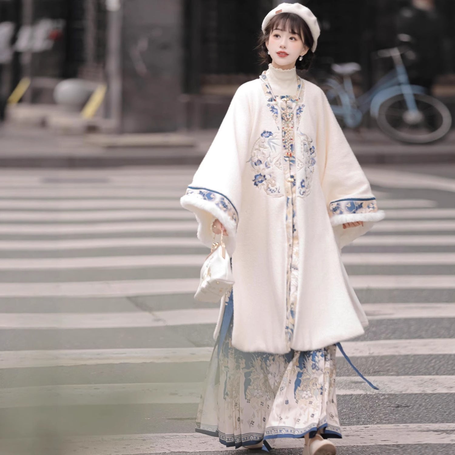 New Chinese Style Clothing Dongrihuarong 冬日花容 Women's Modern Hanfu Qing Dynasty Thicken Velvet Autumn Winter