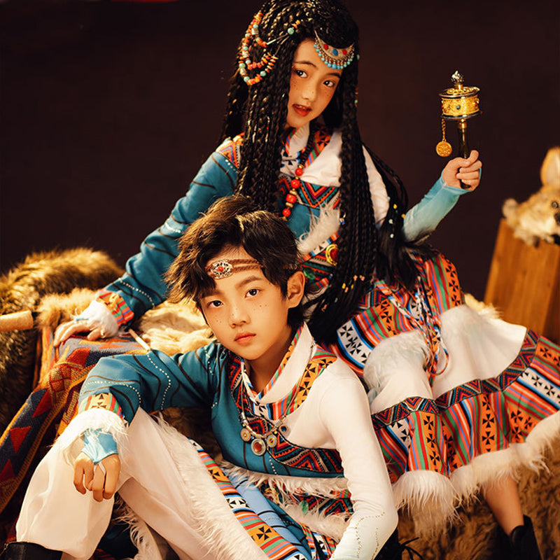 Children's Tibetan Robe Nationality Chinese Culture Clothing Velvet Thick Winter