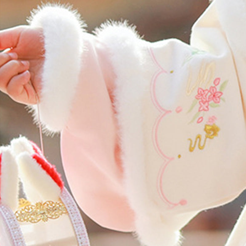 A velvet-lined, thickened open-front robe in soft white, decorated with gentle traditional painting-style embroidery in either pink or blue.