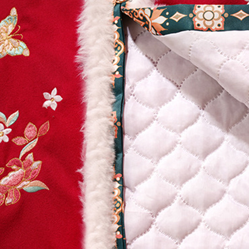 This Ming Dynasty-inspired women's winter outfit features the classic Mamian skirt paired with a warm, thicken outer robe. The design blends traditional floral embroidery with a festive elegance, making it ideal for Lunar New Year celebrations, cultural festivals, and seasonal photography. Available in red and white top styles, the set embodies refined grace while keeping warmth and comfort in mind.