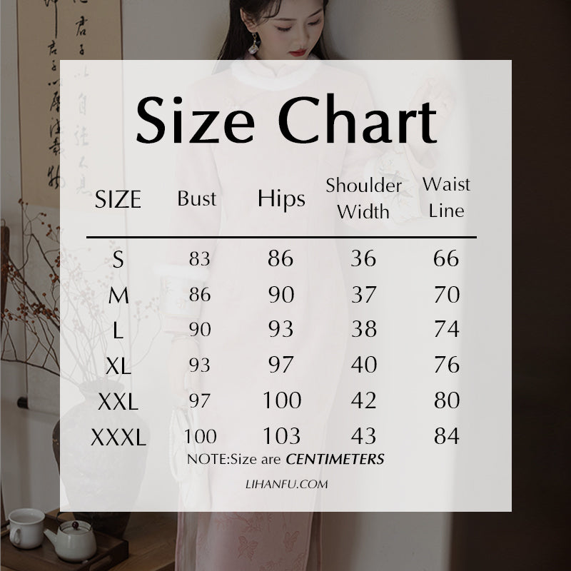 Summary: A warm, feminine winter qipao inspired by modern Hanfu detailing.