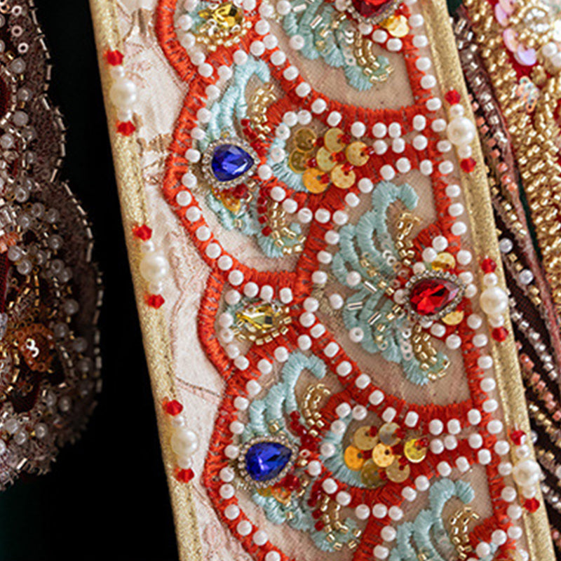 Please hand wash carefully as to not ruin the embroidery, jewels, or buttons. Please air dry the clothes on a hanger. Hand washing and air drying also extends the life of your hanfu. For ironing, please use lowest heat setting or steam out the wrinkles.