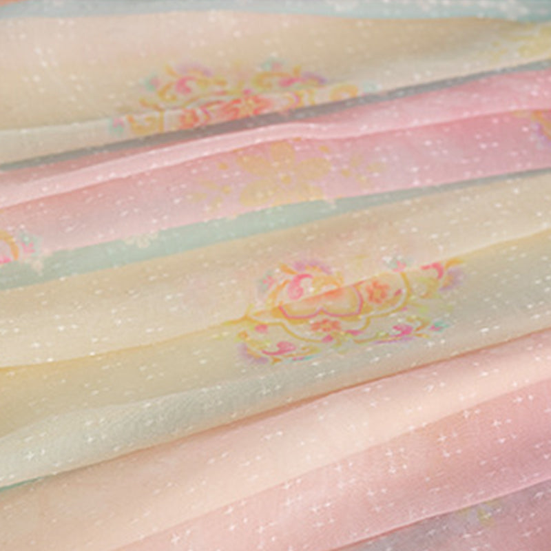 Please hand wash carefully as to not ruin the embroidery, jewels, or buttons. Please air dry the clothes on a hanger. Hand washing and air drying also extends the life of your hanfu. For ironing, please use lowest heat setting or steam out the wrinkles.