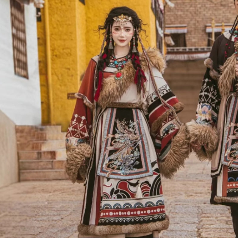 Tibetan Robe Nationality Chinese Culture Clothing 藏 Women Male Velvet Thick Winter