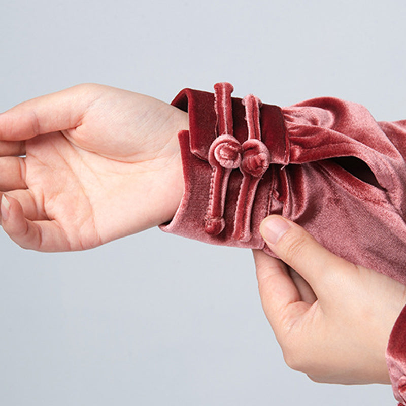 Please hand wash carefully as to not ruin the embroidery, jewels, or buttons. Please air dry the clothes on a hanger. Hand washing and air drying also extends the life of your hanfu. For ironing, please use lowest heat setting or steam out the wrinkles.