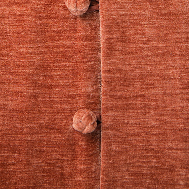 Featuring a standing collar and traditional knot-button opening, it offers warmth and comfort while maintaining a gentle drape in motion.